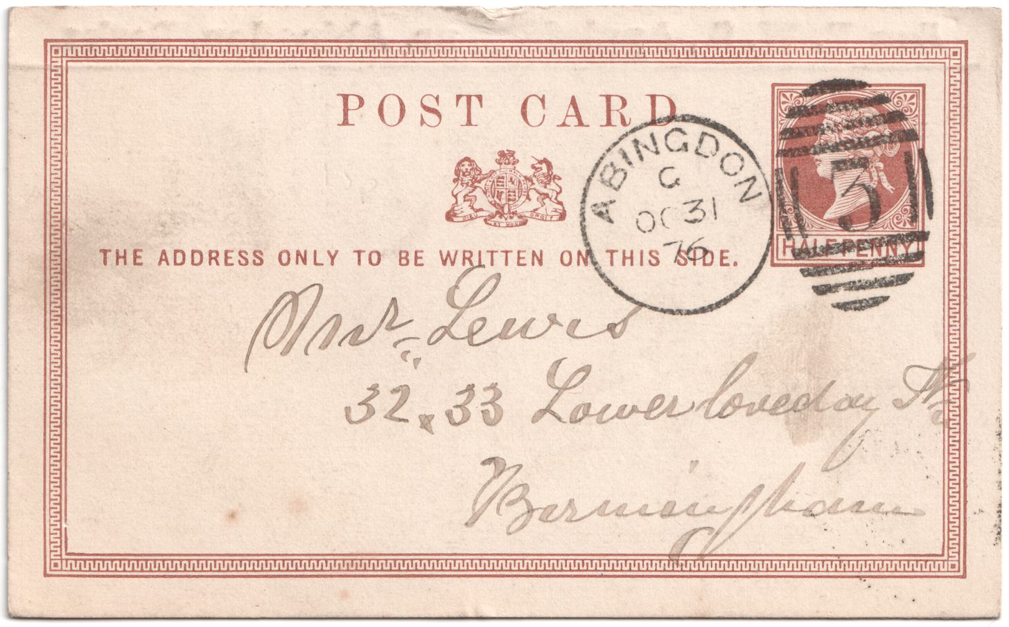 GE Lewis and Sons were a Gun and Rifle maker of some note. I can't entirely read this card but it does appear to mention guns. This is the earliest postcard I have from Abingdon