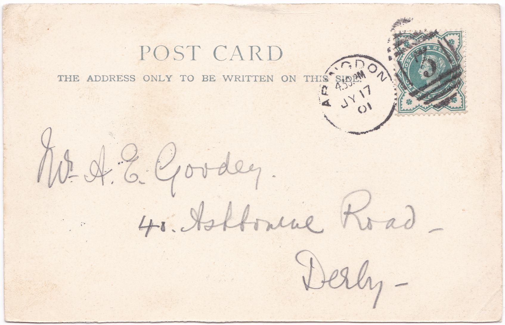 | Sent to | Mr A E Goodey, 40 Ashbourne Road, Derby |