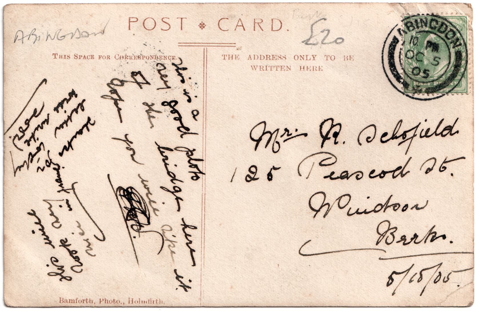 | Sent to | Mr R Schofield, 125 Peascod Street, Windsor, Berks |