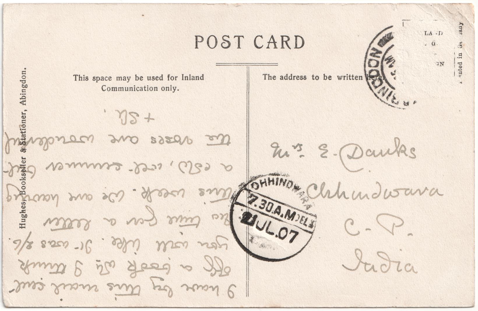 | Sent to | Mrs E Dauks, Ohhindwara, CP, India |