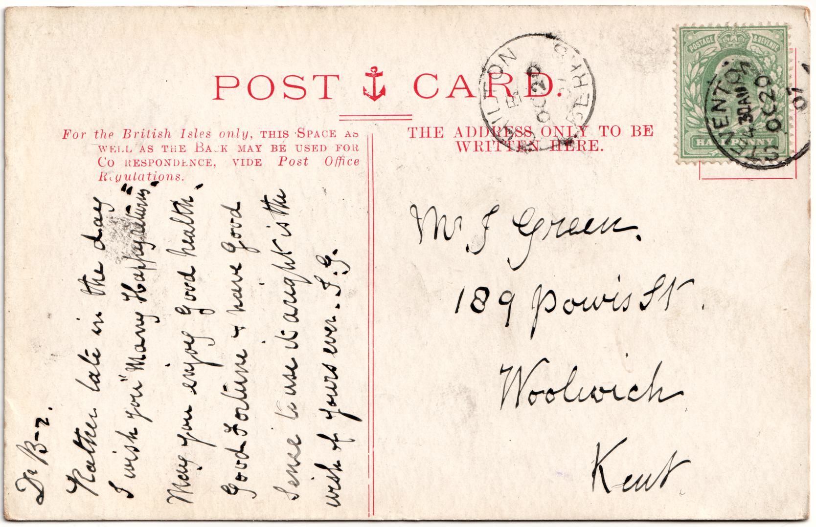 | Sent to | Mr J Green, 189 Powis St, Woolwich, Kent |