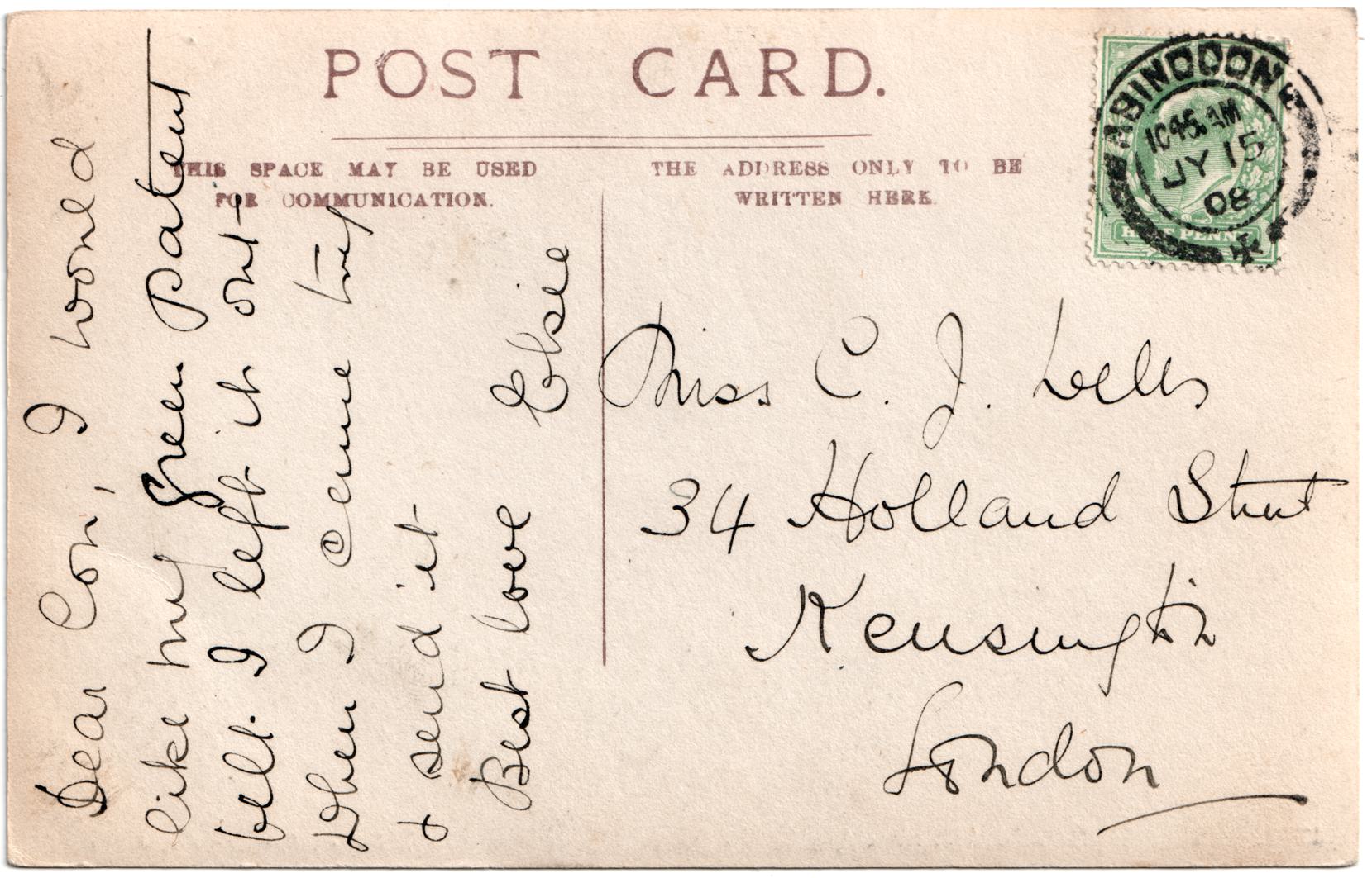 | Sent to | Miss C J Wells, 24 Holland Street, Kensington, London |