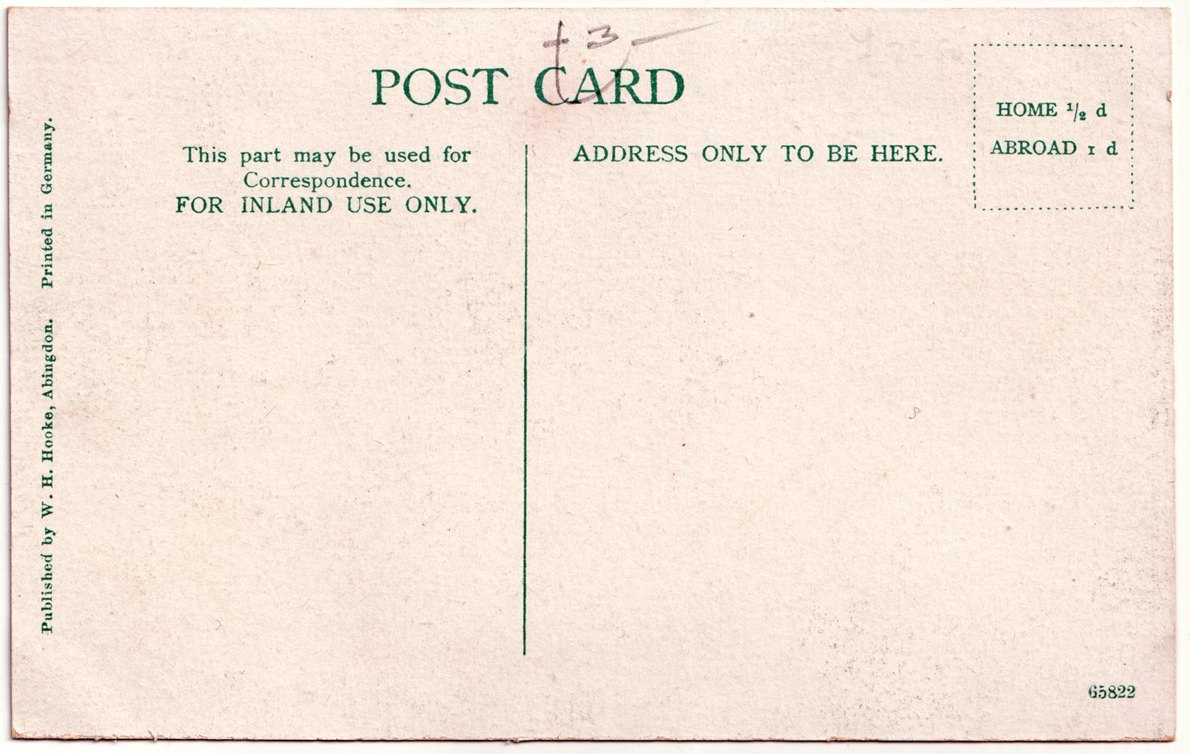 Whilst unposted, this card is identical in presentation to a series of colour cards by WH Hooke in my collection that are dated between 1905-1912. The "Printed in Germany" line certainly makes this pre-1914. The rather dark reproduction in the shadows of this photograph makes it particularly difficult to identify shops that might help date the photo.