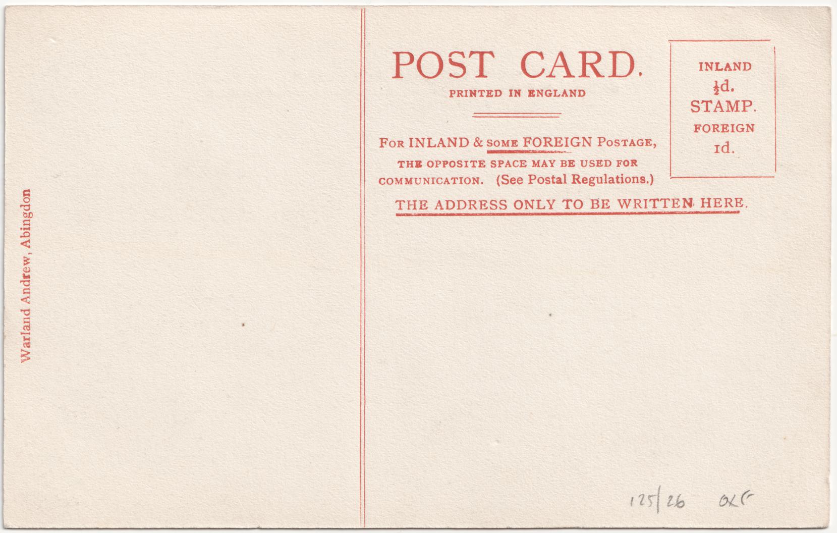 This card is unposted but I've seen another example for sale that was postmarked August 4th 1909. The Crown and Thistle is a courtyard inn that dates back to the early 17th century. There a few later postcards from other publishers featuring the same view of the cobbled courtyard, and they mostly unchanged from this one. Perhaps this card was made as a souvinier for people staying at the hotel?