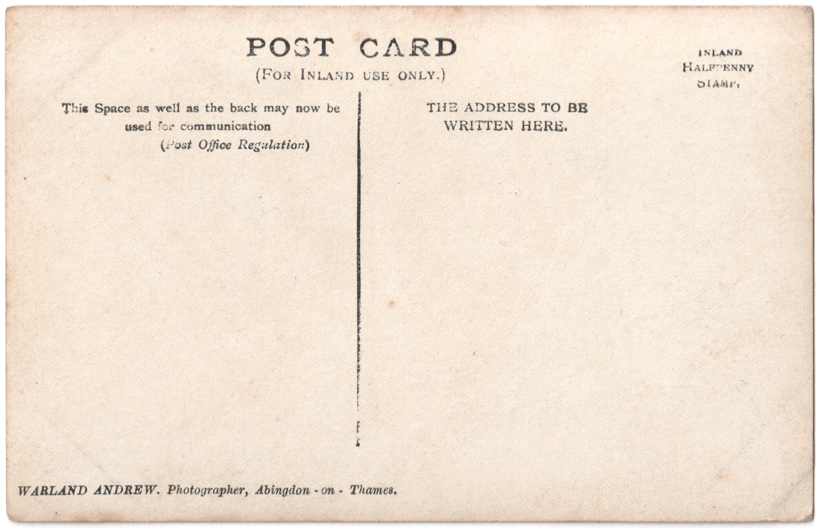 I'm not certain of the date but Warland Andrew was most prolific in the Edwardian Period. This photograph shows the trees outside of Long Alley almshouses having not long been pollarded. Two men stand outside the houses.